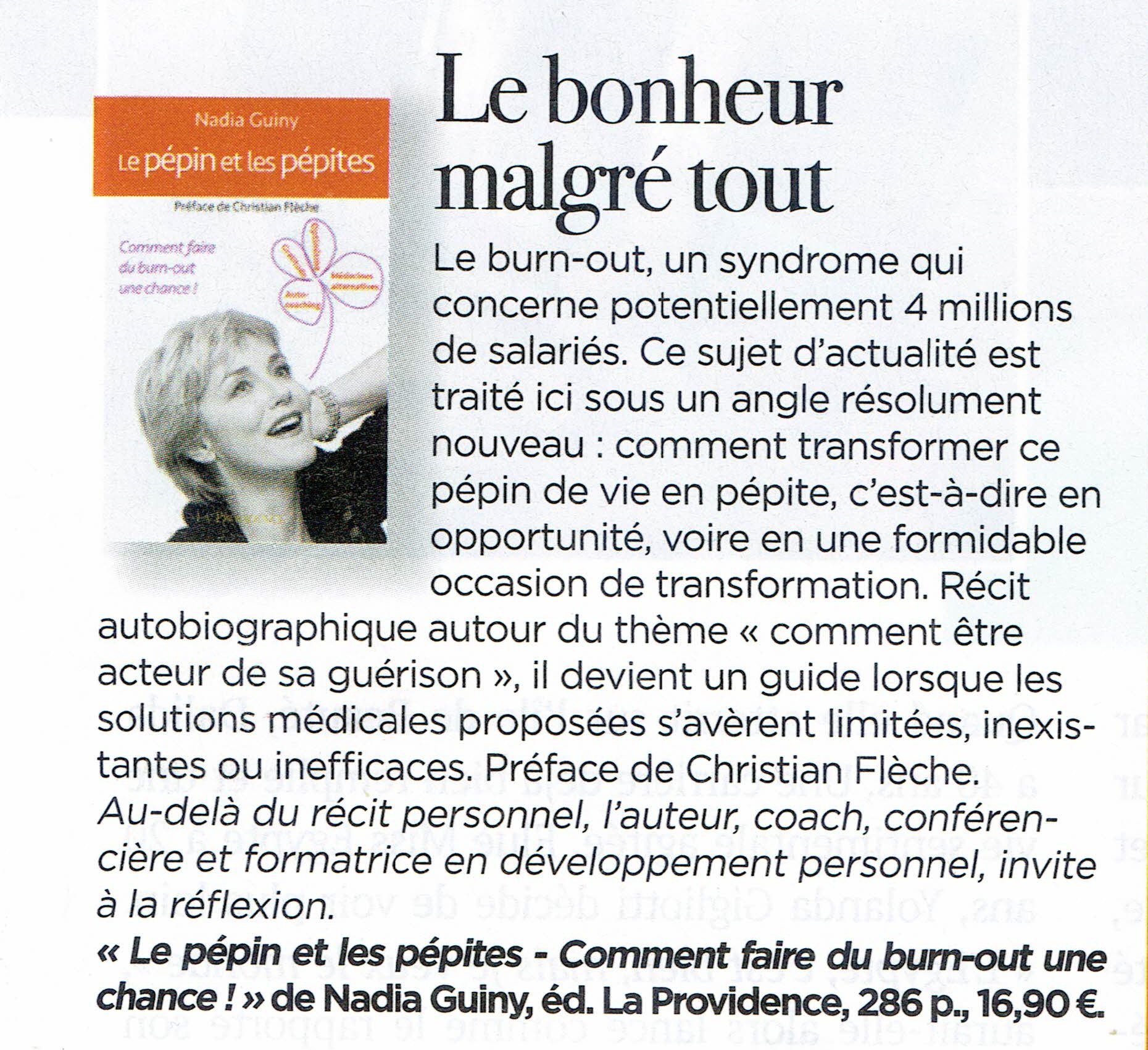 Brillante directrice de la communication dans le milieu institutionnel, il faudra un burn-out pour que Nadia Guiny comprenne le message envoyé par son corps. Après avoir recouvré la santé, elle change radicalement de vie… Comment derrière un pépin se cache parfois des pépites.